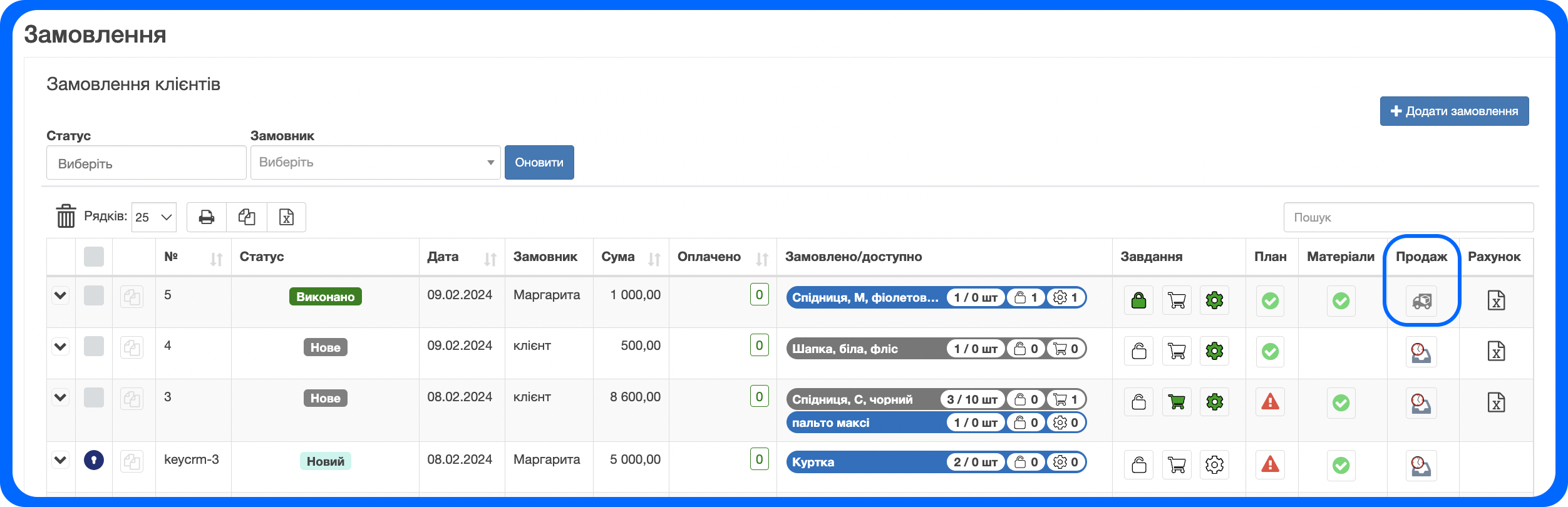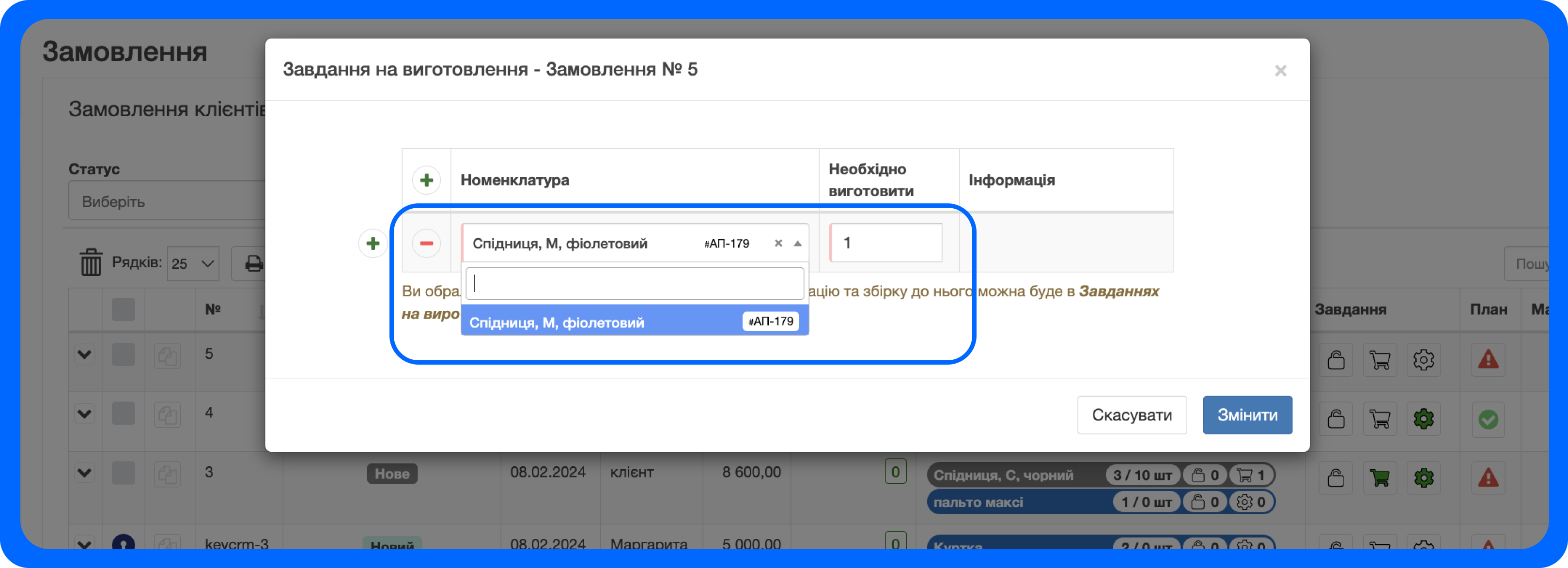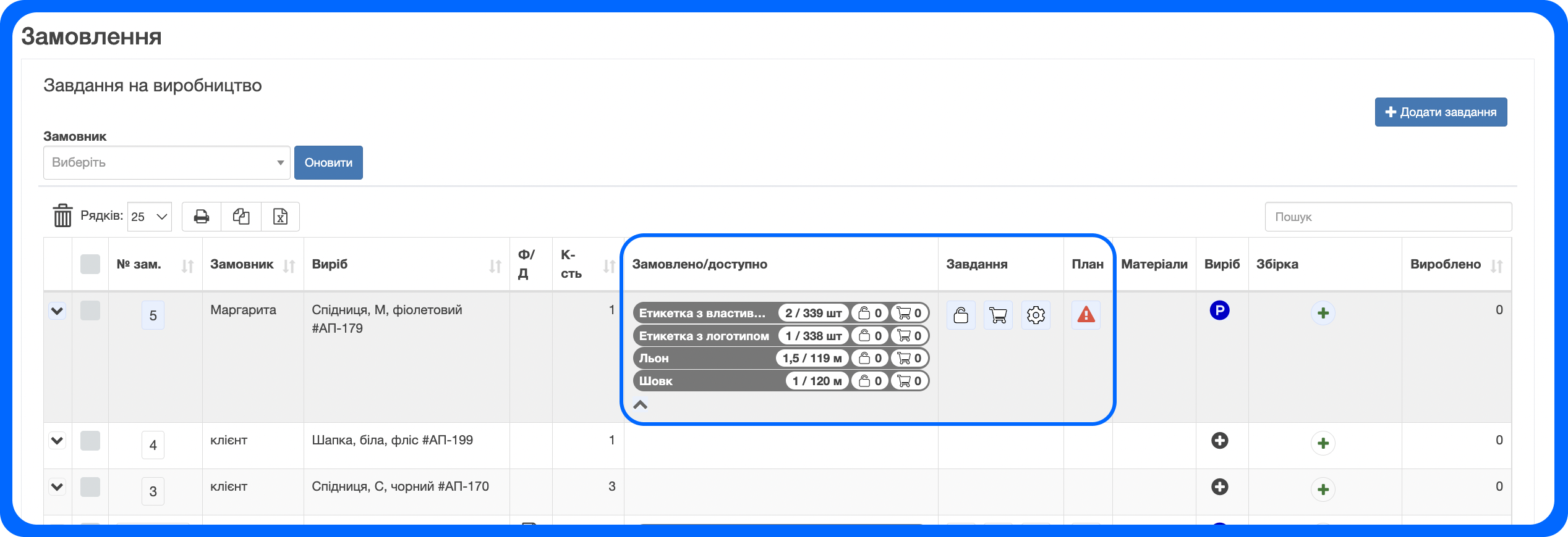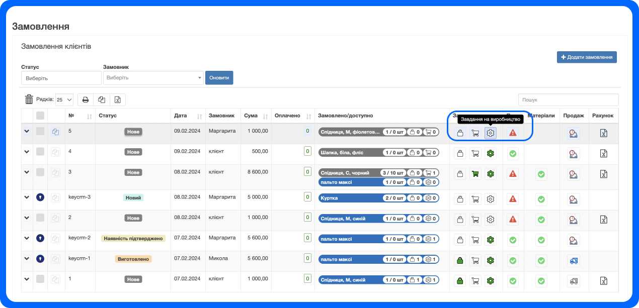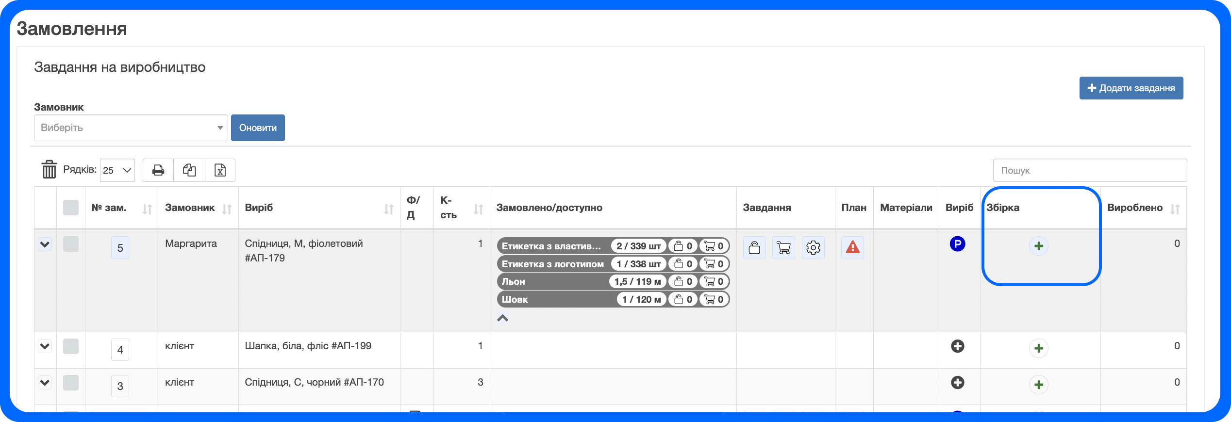 4. Після створення збірки - в замовлення клієнтів у вас буде виконане завдання на вробництво та товар буде готовий до відвантаження: