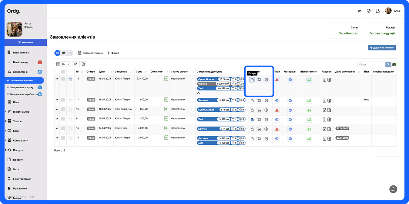 Це необхідно для того, щоб товар, який є на складі та необхідний для цього замовлення не був використаний у іншому замовленні. Таким чином ви зможете побачити доступну кількість товару, який не є зарезервованим для іншого замовлення.