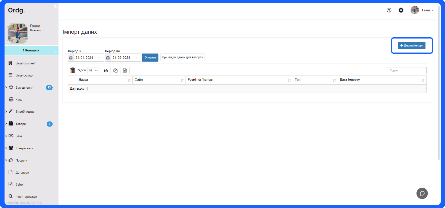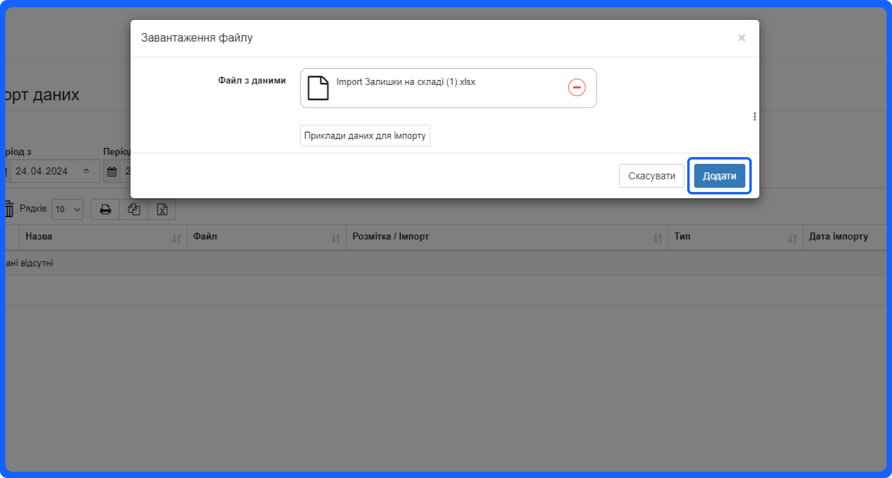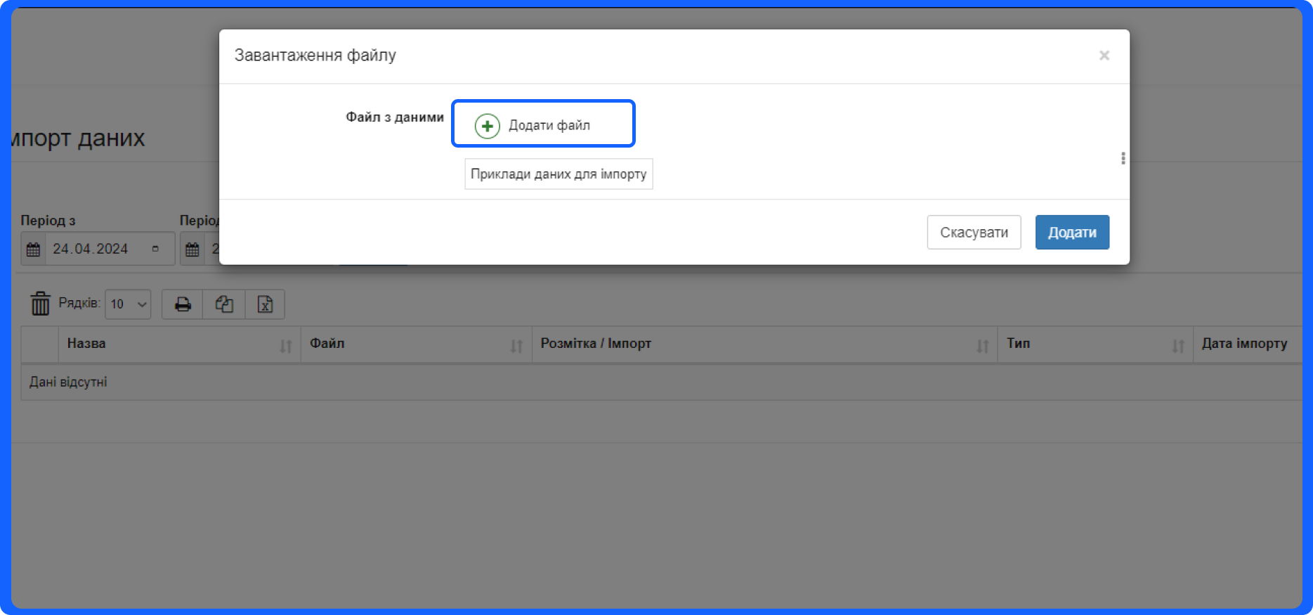 2. Натисніть кнопку “Додати імпорт”