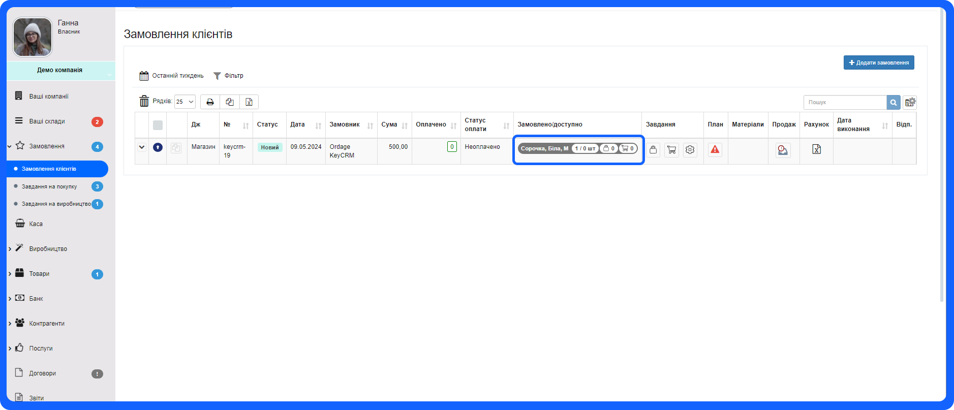 Менеджери, що працюють в KeyCRM бачитимуть актуальні залишки товару та зможуть планувати відправку клієнту🤩