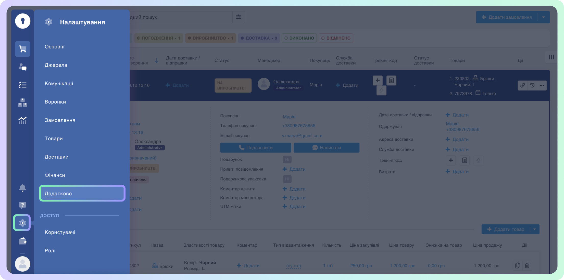 Товари в KeyCRM: Внесіть всі товари, які вам потрібно відстежувати, в систему KeyCRM. Це можна зробити як вручну, так і за допомогою функції імпорту.